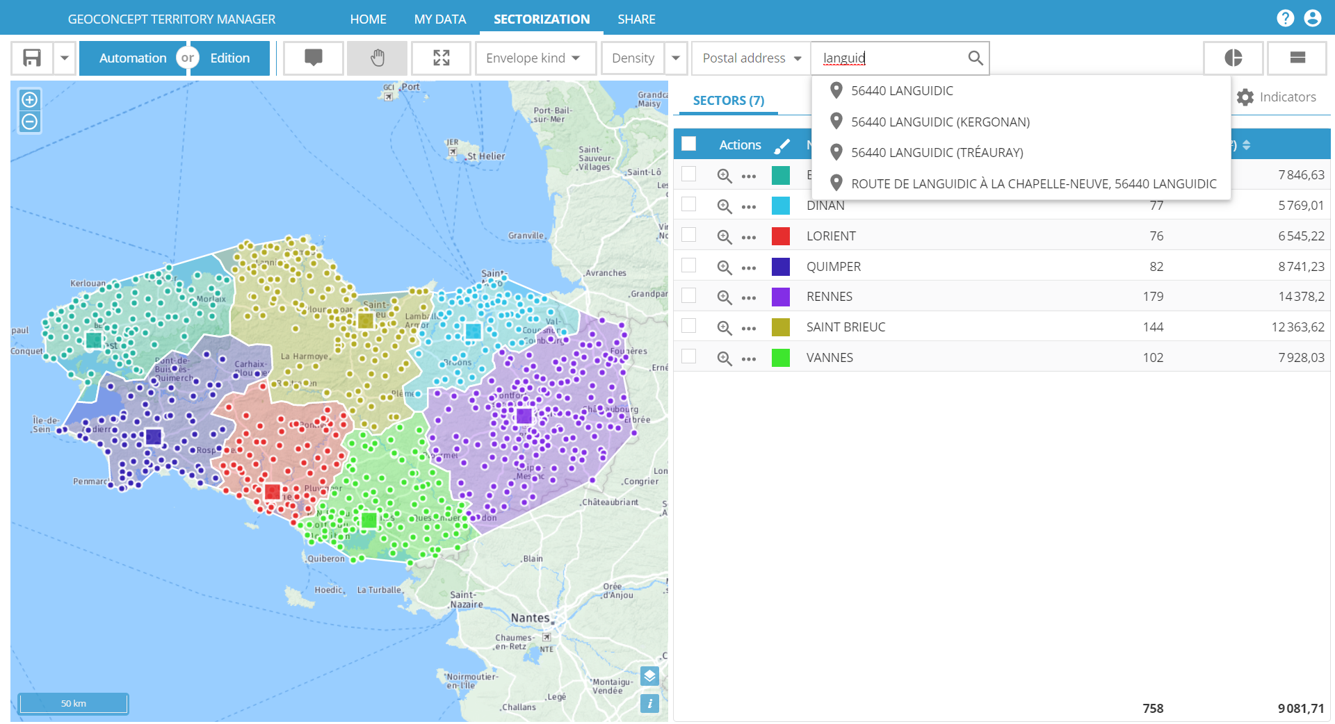 Visualisation des secteurs, équilibrage automatique, ajustement interactif